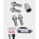 Set de 4 écrous de roues antivol monobloc ultrarésistants à empreintes codées + 1 douille de montage/démontage en acier forgé spécifique à votre Audi A1 & A1 restylée (8X) 2010, 2011, 2012, 2013, 2014, 2015, 2016, 2017 et 2018 | Compatible tous modèles, finitions, jantes et motorisations disponibles.