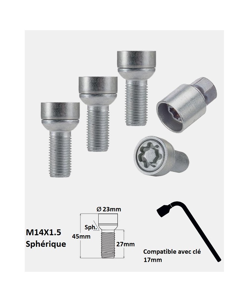 | Dimensions | M14X1.5 / assise sphérique / filetage 27mm |