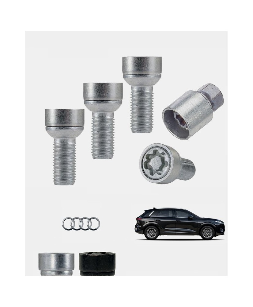 Approuvées par les principaux constructeurs automobiles ces 4 vis antivol haute sécurité sont conçues dans un acier de qualité, forgées à froids et affichent une classe de résistance de 10,9. Soigneusement zinguées en coloris argent ou noir mat afin de leur conférer une finition et une durabilité exemplaire, elles sont spécifiques à votre Audi Q3 troisième génération quelle que soit sa date de mise en circulation, sa version, son niveau de finition (Design, Business Executive, S-Line, etc.), son type de jantes et sa motorisation (Essence Micro-Hybride, Diesel ou Hybride rechargeable).