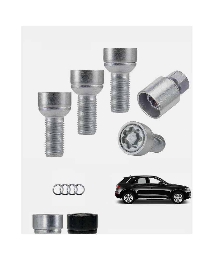 Approuvées par les principaux constructeurs automobiles ces 4 vis antivol haute sécurité sont conçues dans un acier de qualité, forgées à froids et affichent une classe de résistance de 10,9. Soigneusement zinguées en coloris argent ou noir mat afin de leur conférer une finition et une durabilité exemplaire, elles sont spécifiques à votre Audi Q5 seconde génération quelle que soit sa date de mise en circulation (phase 1 ou phase 2), sa version (4x4, 4x2, SQ5, etc.), son niveau de finition (Base, Business Executive, Avus, Design Luxe, S-Line, etc.), son type de jantes et sa motorisation (2.0 TFSi, 3.0 TFSi, 2.0 TDI, 3.0 TDI, etc.).