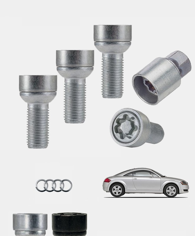Approuvées par les principaux constructeurs automobiles ces 4 vis antivol haute sécurité sont conçues dans un acier de qualité, forgées à froids et affichent une classe de résistance de 10,9. Soigneusement zinguées en coloris argent ou noir mat afin de leur conférer une finition et une durabilité exemplaire, elles sont spécifiques à votre Audi TT MK1 (8N) quelle que soit sa date de mise en circulation, sa version (y compris cabriolet), son niveau de finition (Le Mans, Limited Edition, S-Line, DTM Edition, Design Edition, Quattro Sport, Limi TT 300, etc.), son type de jantes et sa motorisation (1.8 Turbo & 3.2 V6).
