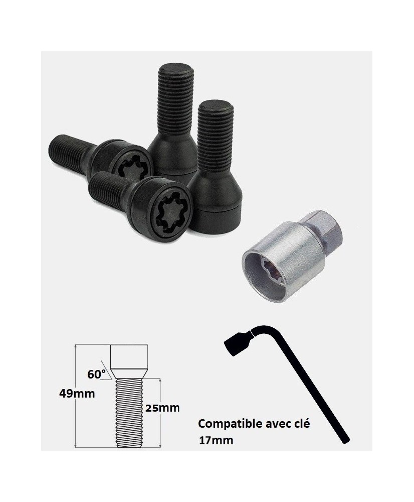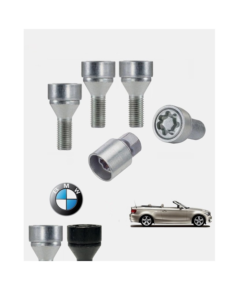 Approuvées par les principaux constructeurs automobiles ces 4 vis antivol haute sécurité sont conçues dans un acier de qualité, forgées à froids et affichent une classe de résistance de 10,9. Soigneusement zinguées en coloris argent ou noir mat afin de leur conférer une finition et une durabilité exemplaire, elles sont spécifiques à votre Bmw Série 1 Cabriolet phase 1 & phase 2 quelle que soit sa date de mise en circulation, sa version, son niveau de finition (Première, Avantage Edition, Excellis, Confort, Luxe, Sport, Sport Edition, Pack M, etc.), son type de jantes et sa motorisation.