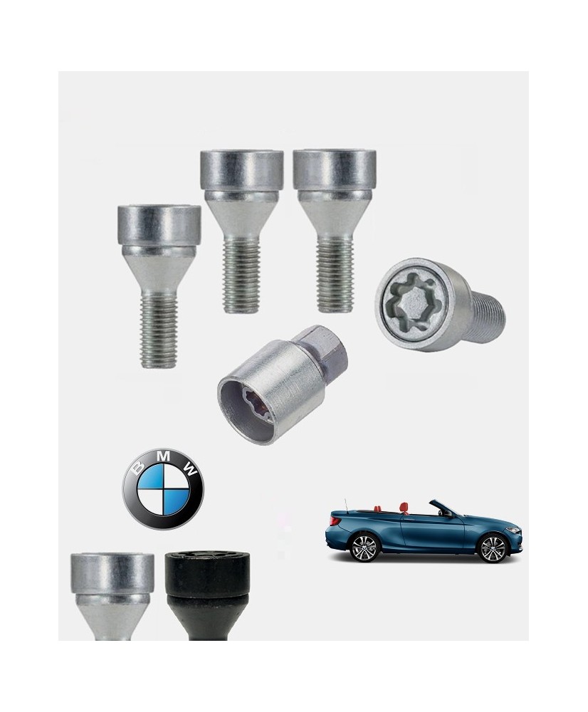 Set de 4 boulons de roues antivol ultrarésistants à empreintes codées (version haute sécurité) + 1 ou 2 douille(s) de montage/démontage en acier forgé à froid spécifique à votre Bmw Série 2 Convertible (F23) 2014, 2015, 2016, 2017, 2018, 2019, 2020 et 2021 | Compatible tous modèles, finitions, jantes et motorisations et disponibles en coloris argent ou noir galvanisé.