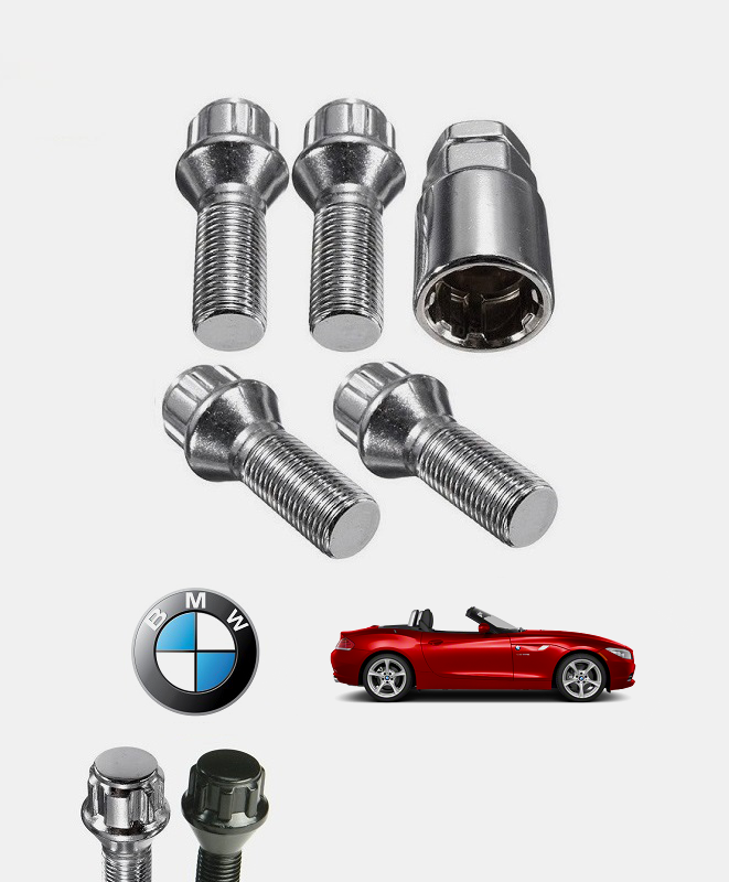 Set de 4 écrous de roues antivol monobloc ultrarésistants à empreintes codées + 1 douille de montage/démontage en acier forgé spécifique à votre Bmw Z4 II (E89) 2009, 2010, 2011, 2012, 2013, 2014, 2015 et 2016 | Compatible tous modèles, finitions, jantes et motorisations disponibles.