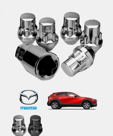 Set de 4 écrous de roues antivol monobloc ultrarésistants à empreintes codées + 1 douille de montage/démontage en acier forgé spécifique à votre Mazda CX-30 2019, 2020, 2021, 2022, 2023, 2024, 2025 et 2026 | Compatible tous modèles, finitions, jantes et motorisations disponibles.