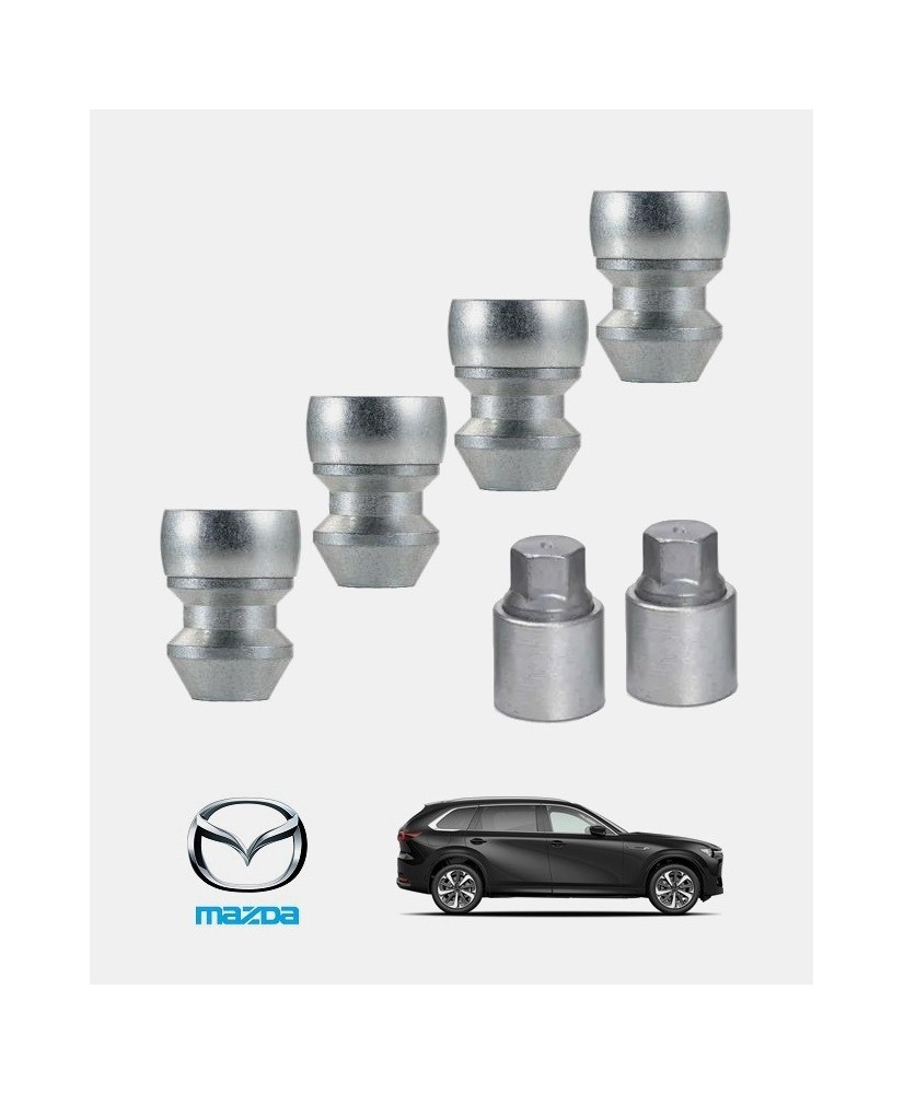 Approuvés par les principaux constructeurs automobiles ces 4 écrous antivol haute sécurité sont conçus dans un acier de qualité, forgés à froids et affichent une classe de résistance de 10. Soigneusement zingués en coloris argent ou noir mat afin de leur conférer une finition et une durabilité exemplaire, ils sont spécifiques à votre Mazda CX80 dernière génération quelle que soit sa date de mise en circulation, sa version (6 ou 7 places), son niveau de finition (Exclusive Line, Homura, Homura Plus, Takumi, Takumi Plus, etc.), son type de jantes et sa motorisation (Hybride rechargeable ou Diesel).