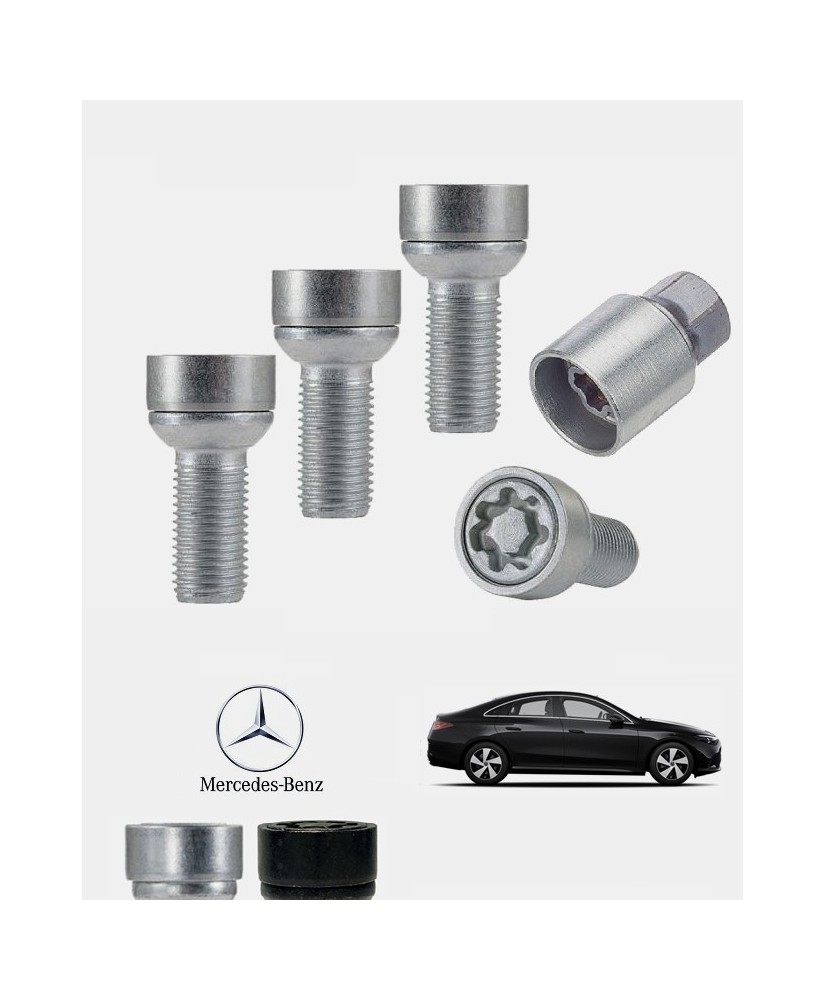 Set de 4 boulons de roues antivol ultrarésistants à empreintes codées (version haute sécurité) + 1 ou 2 douille(s) de montage/démontage en acier forgé à froid spécifique à votre Mercedes-Benz CLA III (C178) & Mercedes CLA Electrique (C174) 2025 et 2026 | Compatible tous modèles, finitions, jantes et motorisations et disponibles en coloris argent ou noir galvanisé.