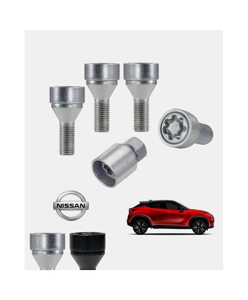 Set de 4 boulons de roues antivol ultrarésistants à empreintes codées (version haute sécurité) + 1 ou 2 douille(s) de montage/démontage en acier forgé à froid spécifique à votre Nissan Qashqai 3 (J12) 2021, 2022, 2023, 2024 et 2025 | Compatible tous modèles, finitions, jantes et motorisations. Disponibles en coloris argent ou noir galvanisé.