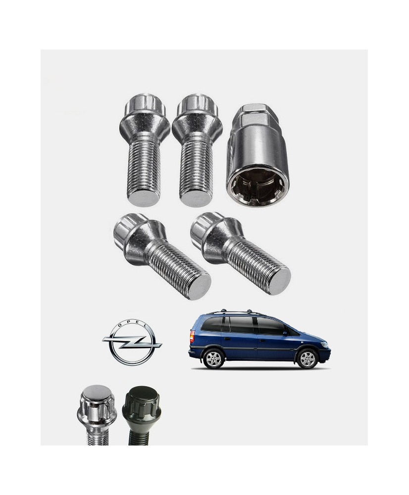 Set de 4 écrous de roues antivol monobloc ultrarésistants à empreintes codées + 1 douille de montage/démontage en acier forgé spécifique à votre Opel Zafira (A) 1999, 2000, 2001, 2002, 2003, 2004 et 2005 | Compatible tous modèles, finitions, jantes et motorisations disponibles.
