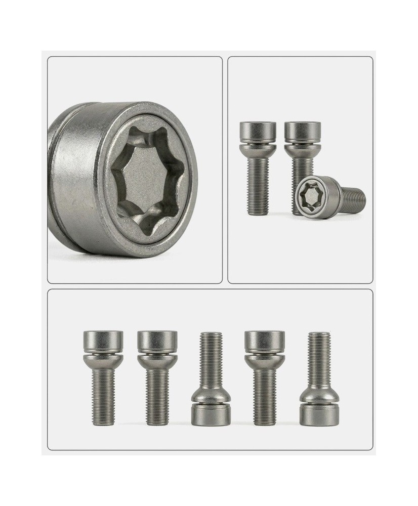 Grâce à leurs empreintes codées uniques (fleur, étoile ou inserts de sécurité), ces vis antivol rendent le démontage impossible sans la clé spécifique fournie. Ils dissuadent efficacement les voleurs et protègent vos 4 jantes contre les tentatives de vol.