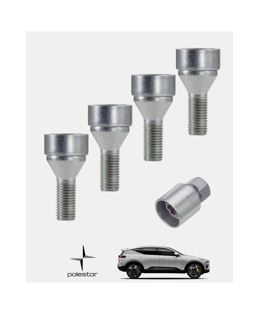 Set de 4 écrous de roues antivol monobloc ultrarésistants à empreintes codées + 1 douille de montage/démontage en acier forgé spécifique à votre Polestar 3 2023, 2024 et 2025 | Compatible tous modèles, finitions, jantes et motorisations. Disponibles en coloris argent ou noir galvanisé.