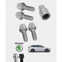Set de 4 écrous de roues antivol monobloc ultrarésistants à empreintes codées + 1 douille de montage/démontage en acier forgé spécifique à votre Skoda Octavia IV 2020, 2021, 2022, 2023, 2024 et 2025 | Compatible tous modèles, finitions, jantes et motorisations disponibles.
