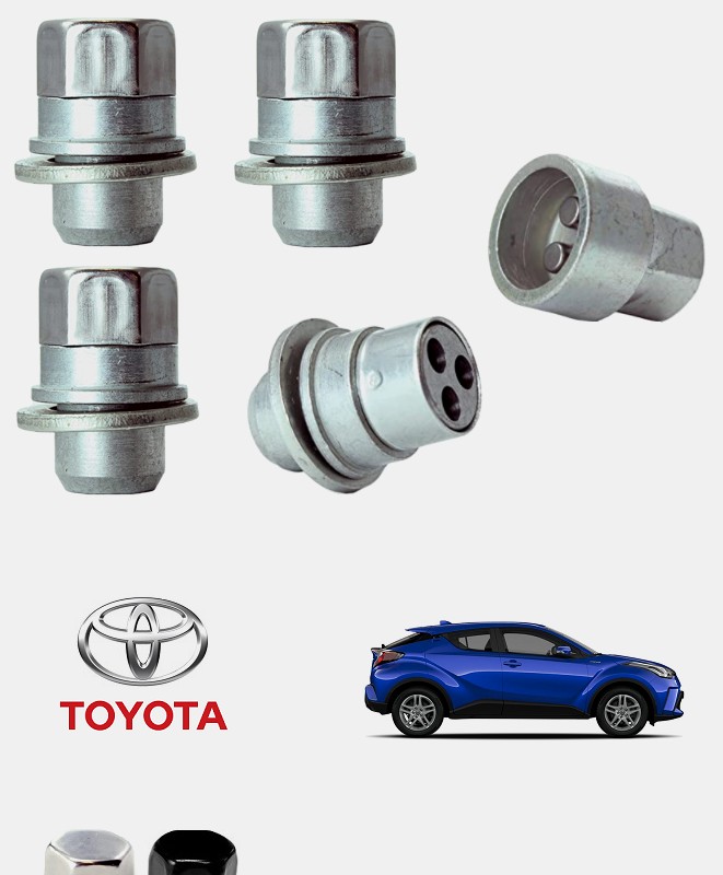 Important: avant le montage de votre nouveau kit d'antivols de roues, vérifiez que les dimensions, le filetage et l'assise de l'écrou d'origine de votre Toyota CHR concordent avec ceux de la référence que vous avez réceptionné. Visser le boulon antivol à la main sur les premiers tours sans forcer. Ne pas frapper sur la tête de l'écrou antivol, exercez une pression axiale sur la douille de montage et proscrire l'emploi de clef à chocs lors de vos opérations de montage/démontage.