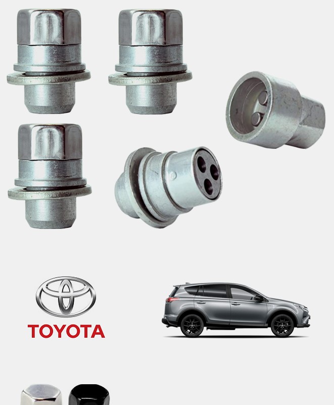 Important: avant le montage de votre nouveau kit d'antivols de roues, vérifiez que les dimensions, le filetage et l'assise de l'écrou d'origine de votre Toyota RAV4 concordent avec ceux de la référence que vous avez réceptionné. Visser le boulon antivol à la main sur les premiers tours sans forcer. Ne pas frapper sur la tête de l'écrou antivol, exercez une pression axiale sur la douille de montage et proscrire l'emploi de clef à chocs lors de vos opérations de montage/démontage.