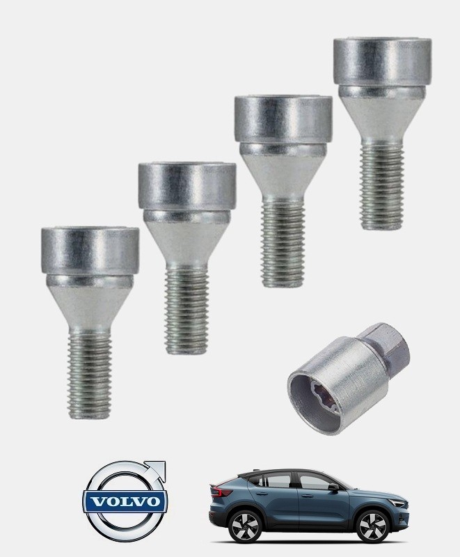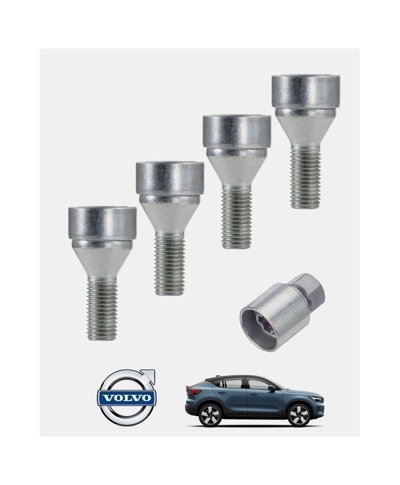 Set de 4 écrous de roues antivol monobloc ultrarésistants à empreintes codées + 1 douille de montage/démontage en acier forgé spécifique à votre Volvo C40 RECHARGE, XC40 Recharge, EC40 ou EX40 de 2021, 2022, 2023, 2024 et 2025 | Compatible tous modèles, finitions, jantes et motorisations. Disponibles en coloris argent ou noir galvanisé.