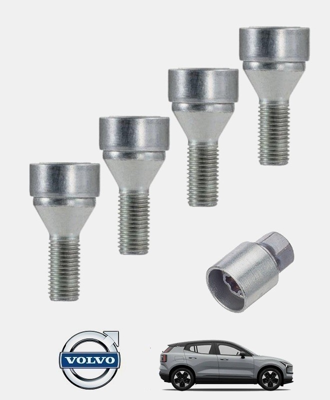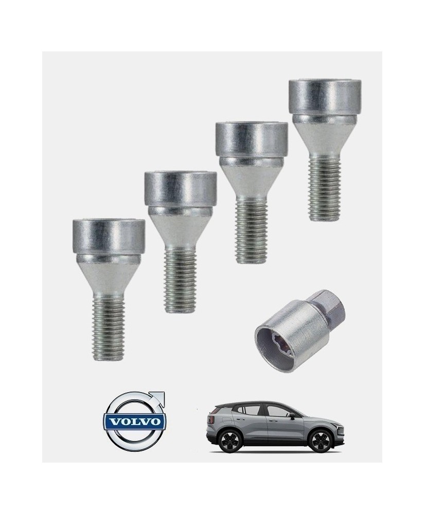Set de 4 écrous de roues antivol monobloc ultrarésistants à empreintes codées + 1 douille de montage/démontage en acier forgé spécifique à votre Volvo EX30 2023, 2024 et 2025 | Compatible tous modèles, finitions, jantes et motorisations. Disponibles en coloris argent ou noir galvanisé.