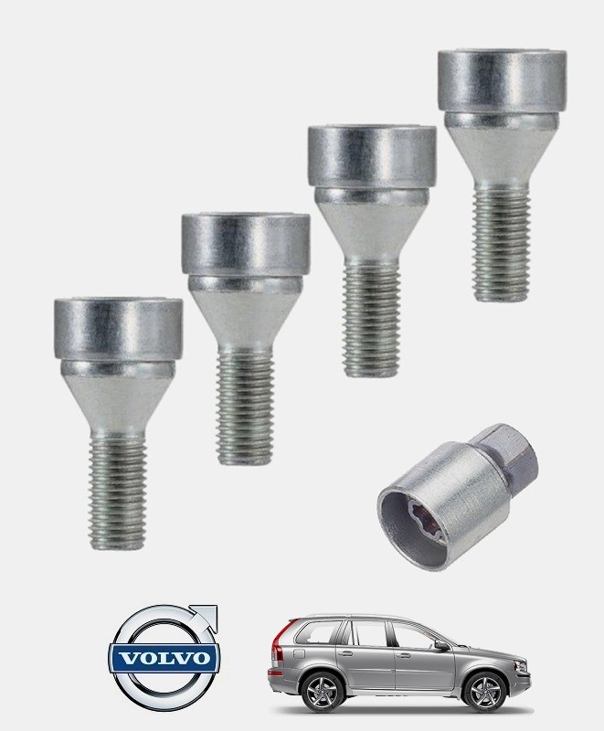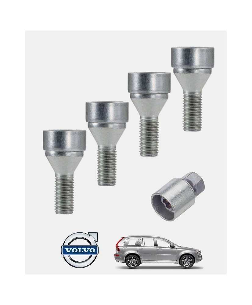 Set de 4 écrous de roues antivol monobloc ultrarésistants à empreintes codées + 1 douille de montage/démontage en acier forgé spécifique à votre Volvo XC90 première génération phase 1 & phase 2 (P2) 2006, 2007, 2008, 2009, 2010, 2011, 2012, 2013 et 2014 | Compatible tous modèles, finitions, jantes et motorisations. Disponibles en coloris argent ou noir galvanisé.