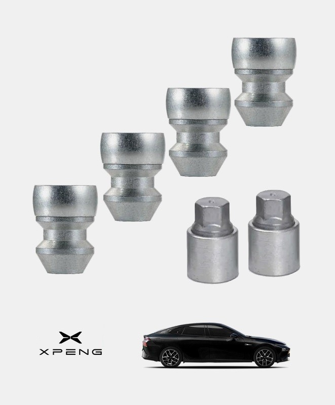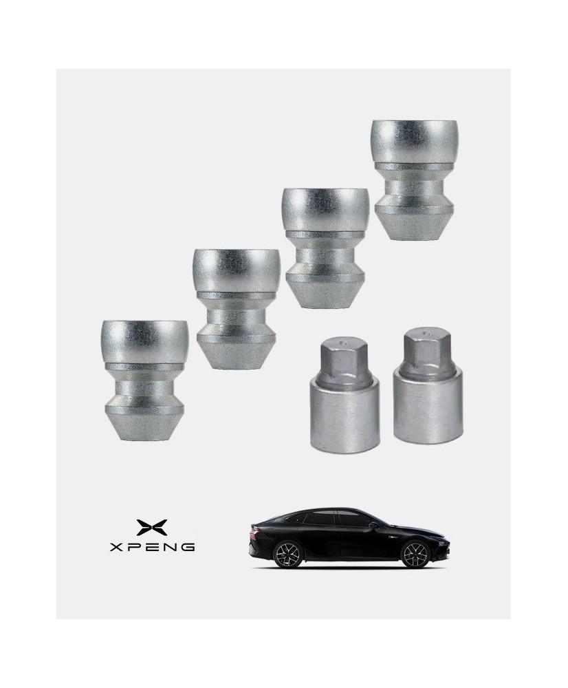 Set de 4 écrous de roues antivol ultrarésistants à empreintes codées (version haute sécurité) + 1 ou 2 douille(s) de montage/démontage en acier forgé à froid spécifique à votre XPENG P7 & XPENG P7+ 2025 et 2026 | Compatible tous modèles, finitions, jantes et motorisations et disponibles en coloris argent ou noir galvanisé.